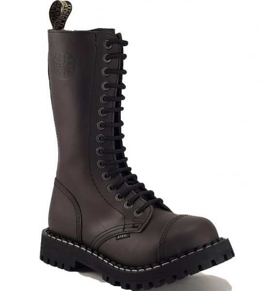 15 Dierkové Topánky Steel Hnedé, kožený kožený zvršok, podrážka z tvrdenej gumy, trojité šitie, oceľová špica, flísová lepená stielka, výška topánky 31 cm podrážka pod pätou 3,72 cm, podrážka pod špicou 2,41 cm