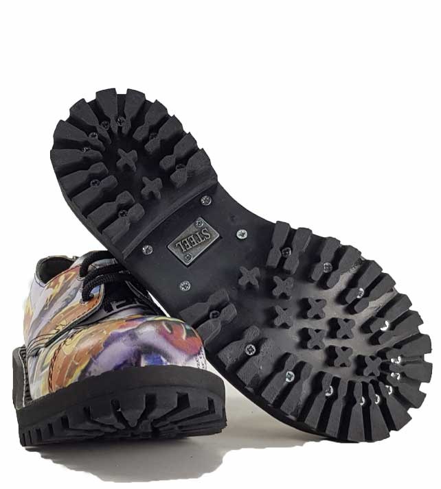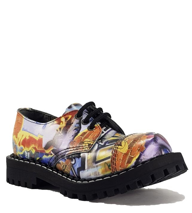 3 Dierkové Topánky Steel Graffiti, kožený kožený zvršok, podrážka z tvrdenej gumy, trojité šitie, oceľová špica, flísová lepená stielka, výška topánky 10,3 cm podrážka pod pätou 3,72 cm, podrážka pod špicou 2,41 cm