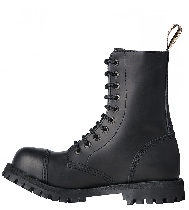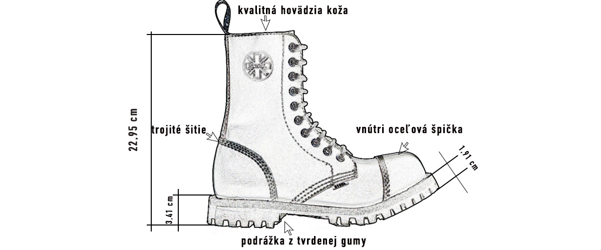 10 Dierkové Topánky Steel Čierne, kožený kožený zvršok, podrážka z tvrdenej gumy, trojité šitie, oceľová špica, flísová lepená stielka, výška topánky 22,95 cm podrážka pod pätou 3,41 cm, podrážka pod špicou 1,91 cm